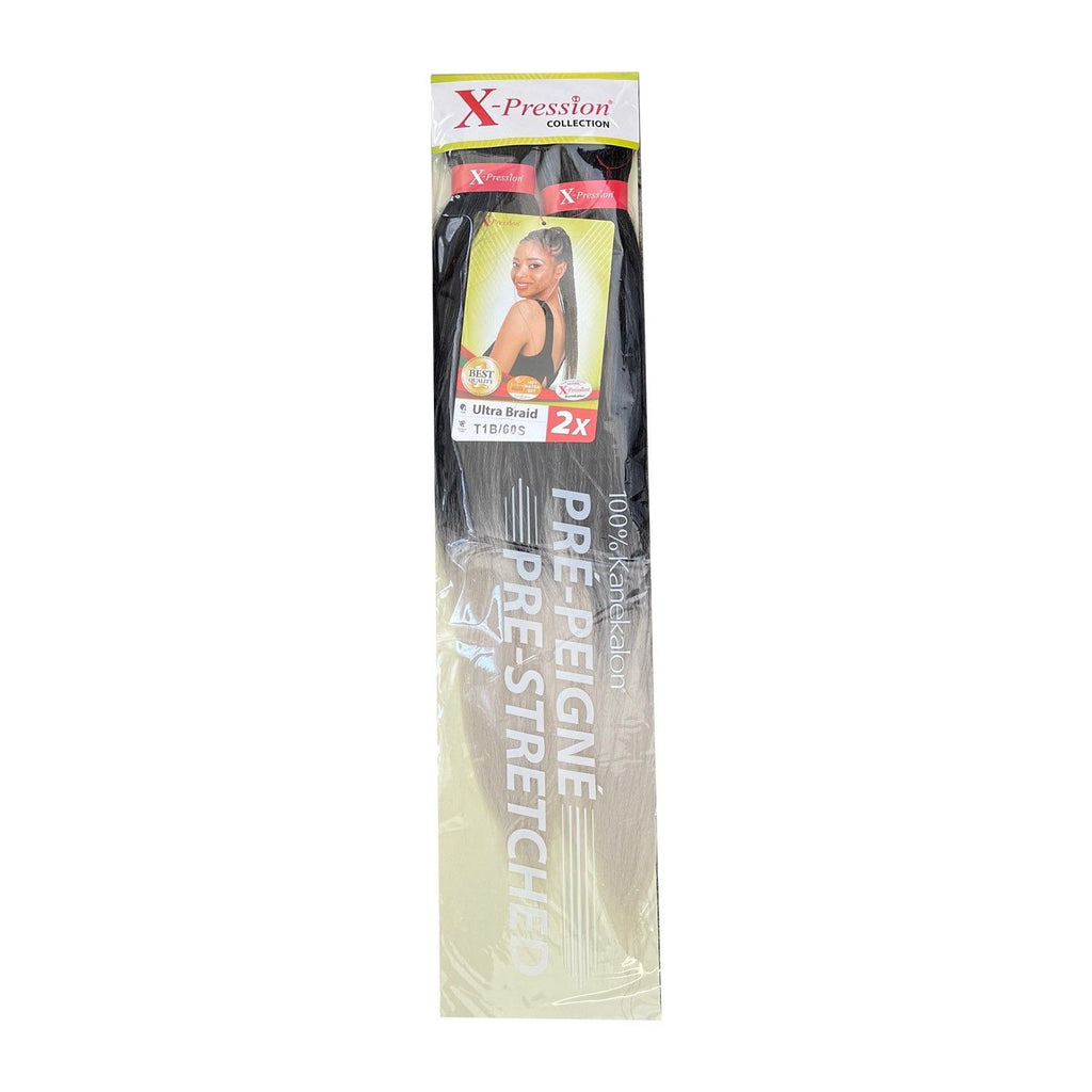 X-Pression Ultra Braid 2x pre-stretched synthetic hair extensions deliver professional-grade braiding performance with minimal effort. Crafted from 100% Kanekalon fiber, these lightweight extensions resist tangling and maintain their integrity through repeated styling. The pre-stretched construction reduces installation time while the hot water setting capability allows customization of texture and finish. Ideal for protective styling, these extensions offer durability and versatility for both everyday wear and intricate braiding designs. Experience reliable quality that holds its shape wash after wash.