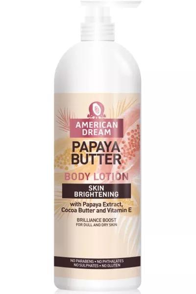 American Dream Papaya Butter Body Lotion combines the nourishing properties of ripe papaya extract with rich butter to deliver intensive hydration and skin conditioning. This luxurious formula absorbs quickly without greasy residue, leaving your skin soft, supple, and visibly renewed. The natural papaya enzymes gently exfoliate whilst the emollient butter base restores moisture balance and elasticity. Ideal for daily use on all skin types, this lotion provides lasting comfort and a subtle tropical fragrance that evokes effortless elegance.